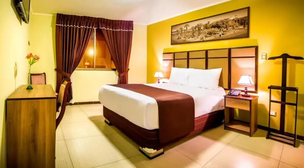 O Hotel D'Carlo Class oferece uma experiência acolhedora em Arequipa, Peru. Localizado na Av. La Paz 310-A, o estabelecimento conta com serviços essenciais como café da manhã maravilhoso, restaurante, traslado do aeroporto, recepção 24 horas, serviço de quarto e quartos para famílias. Os hóspedes podem aproveitar facilidades como internet gratuita e acesso a diversos pontos turísticos próximos, incluindo parques e monumentos históricos. Com opções de lazer e conveniência, o hotel é ideal tanto para viagens curtas quanto prolongadas.